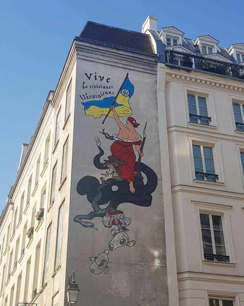 Η ρωσική πρεσβεία στο Παρίσι ανήρτησε =σκίτσο που δείχνει μία σορό να κείτεται σε ένα τραπέζι, το οποίο ονομάζεται «Ευρώπη», ενώ χαρακτήρες που απεικονίζουν τις ΗΠΑ και την Ευρωπαϊκή Ένωση το τρυπάνε με βελόνες.