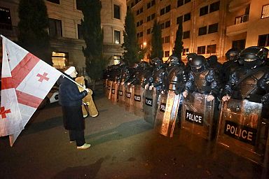 Χιλιάδες διαδηλωτές κατέκλυσαν τους δρόμους γύρω από το γεωργιανό κοινοβούλιο για να εκφράσουν την αντίθεσή τους στην απόφαση του κυβερνώντος κόμματος να αναστείλει τις ενταξιακές συνομιλίες με την ΕΕ.